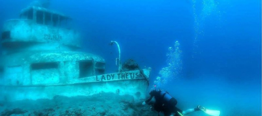 The Lady Thetis wreck is one of two wrecks that make up the Dasoudi Marine Protected Area (MPA), alongside the Costandis wreck, with both sunk